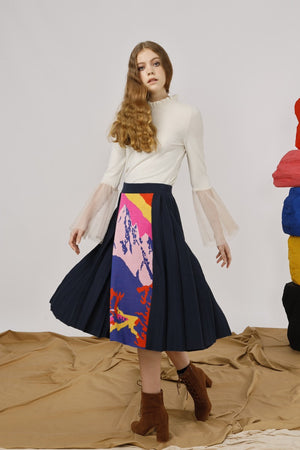 Add a splash of color to your wardrobe this season with our midi skirt. The statement panel stands out against crisp pleats to create a beautiful swishing motion as you walk. Pair with a simple tee and you'll be sure to stand out from the crowd.